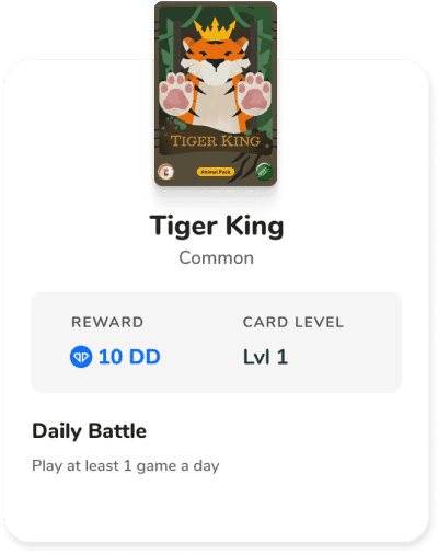 Earn $DD rewards from the NFT cards that you own! There are daily quests available for all rarities and all levels!